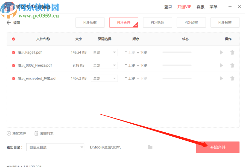 6.最后我们在设置好合并文件的输出路径之后点击界面右下角的开始合并这个功能按钮就可以开始合并PDF文件的操作了。