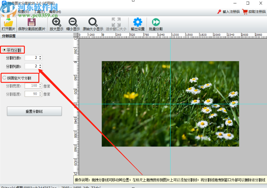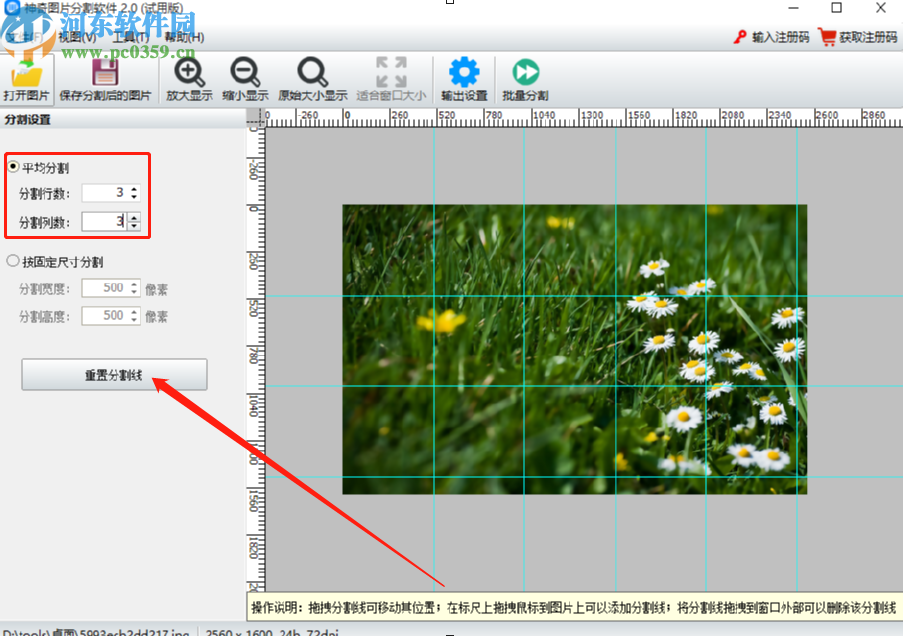 4.选择好分割模式之后我们设置分割的一些参数,平均分割模式的话就需要输入分割的行数和列数,输入之后点击重置分割线按钮。