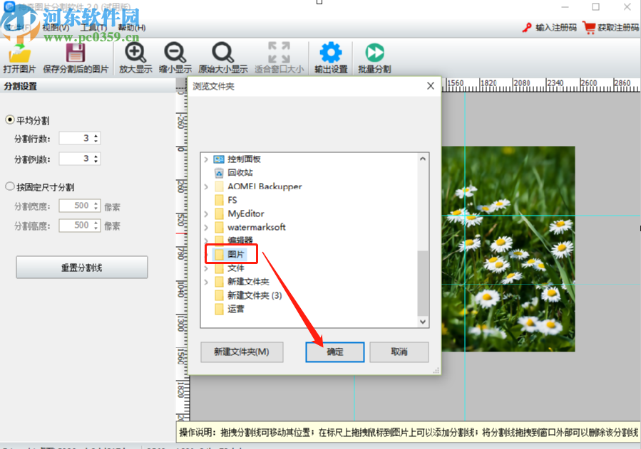 6.点击保存之后最后一步就是选择分割图片的保存位置,选择完成之后我们点击确定按钮即可将分割图片给保存下来。