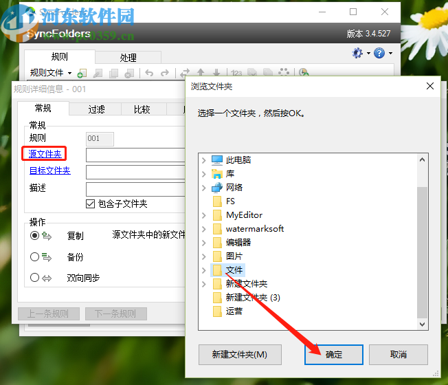 2.点击创建规则图标之后我们点击界面中的源文件夹这个选项,然后在出现的界面中即可选择自己想要备份的文件。