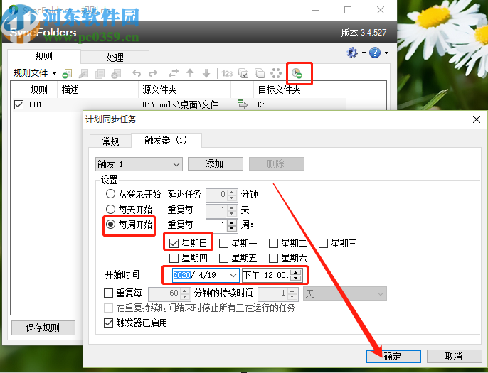 5.点击确定按钮之后我们回到软件主界面中,然后点击界面上方的时钟图标,点击之后在出现的界面中切换到触发器界面,我们在其中设置好定时触发备份任务的时间,根据自己的需求设置好触发时间之后点击确定按钮即可。
