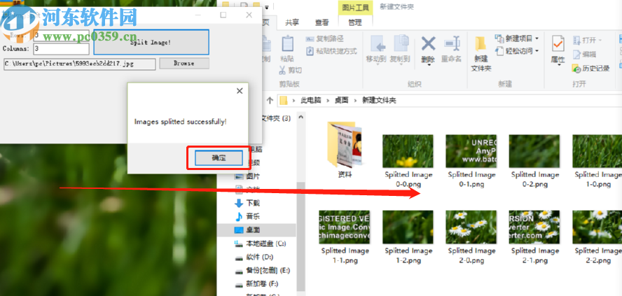 6.点击确定按钮之后软件就会开始分割了,分割完成之后会弹出一个分割完成的界面,这时我们打开储存分割文件的文件夹即可查看已经分割之后的图片。