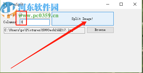 3.点击打开按钮之后图片就成功选择添加到软件界面中了,然后我们在界面中的Rows和Columns这里可以设置分割的行数和列数,Rows表示行,Columns表示列。