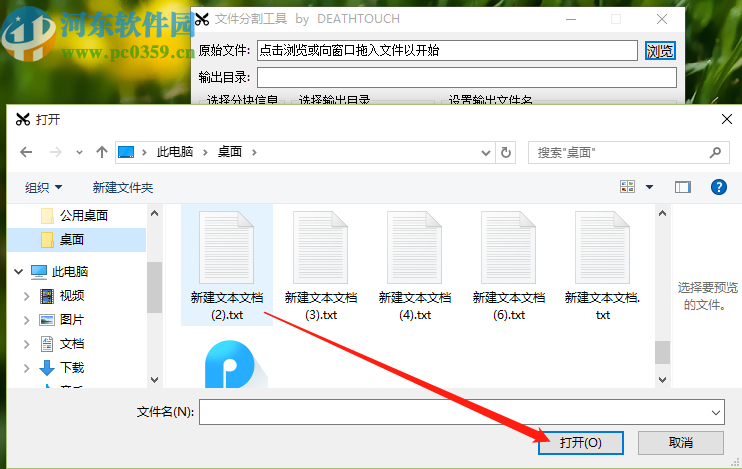 2.点击浏览按钮之后会打开一个选择文件的界面,在这个界面中选中目标TXT文件之后我们点击界面右下角的打开按钮即可。