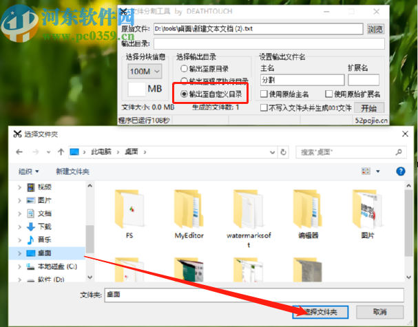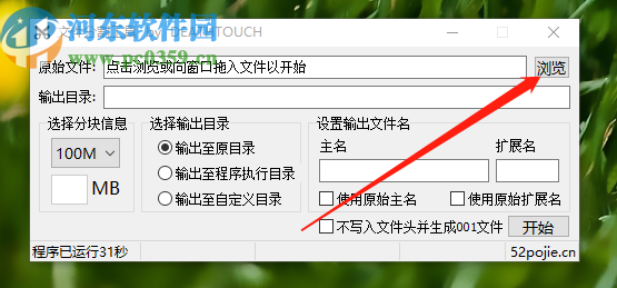 4.设置好想要分割文件的大小之后,我们在界面的设置输出文件名位置可以设置想要输出保存的文件名称。