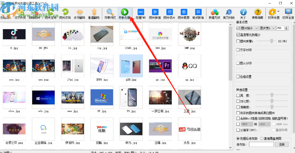 6.最后一步我们只需要点击界面上方的开始处理这个功能按钮就可以开始批量缩小选择的这些图片了。