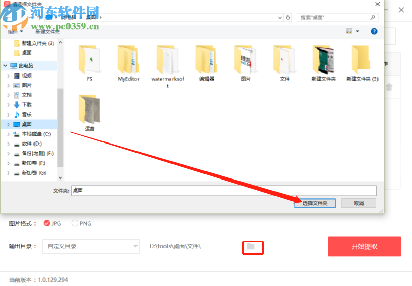 5.选择好图片文件提取保存的格式之后,我们点击输出目录右边的文件夹图标可以选择图片文件提取之后的储存位置,这样用户就比较方便查看了。