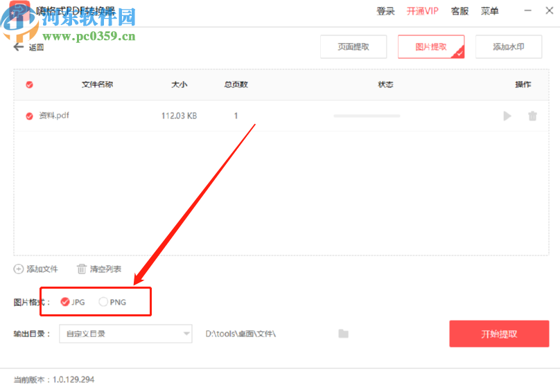 6.设置好图片提取的输出位置之后我们点击界面右下角的开始提取这个功能按钮就可以开始提取PDF文件中的图片了。