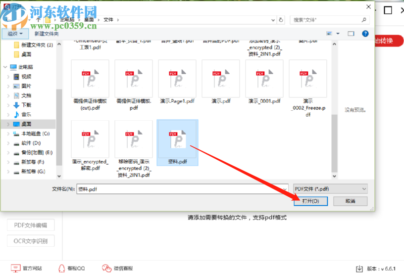 2.点击添加文件按钮之后紧接着会打开一个选择文件的界面,在这个界面中我们选择好想要压缩的PDF文件之后点击打开按钮。