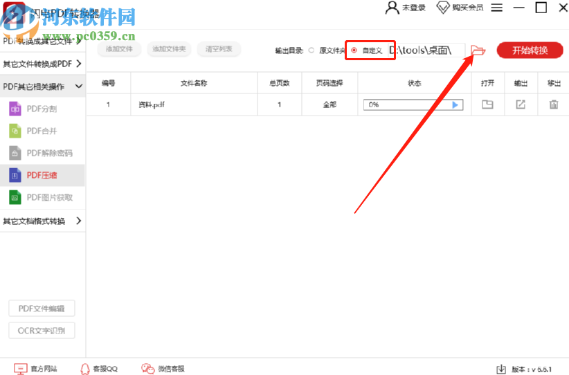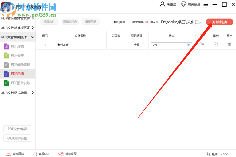 5.等到我们设置好文件的输出储存位置之后,点击界面右上方的开始转换这个按钮就可以开始压缩文件的操作了。