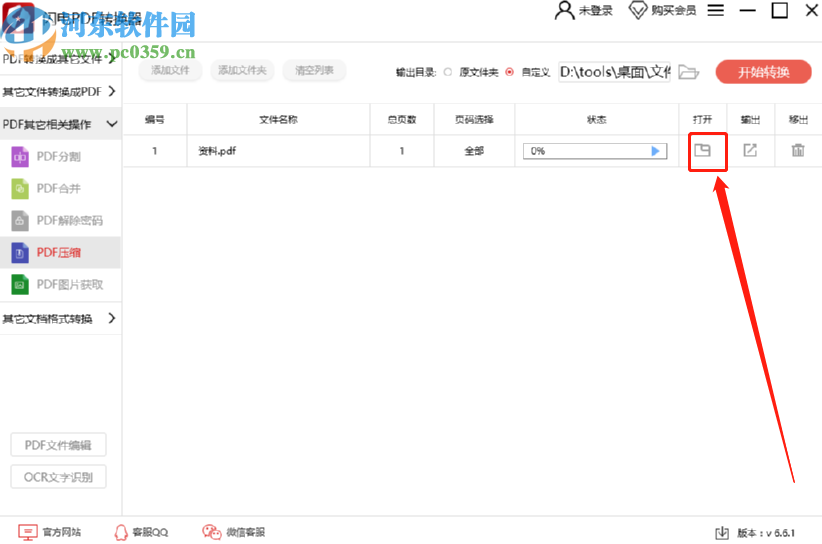 6.最后文件压缩的操作完成之后,我们就可以点击打开选项下面的文件夹图标来打开查看压缩之后的PDF文件了。