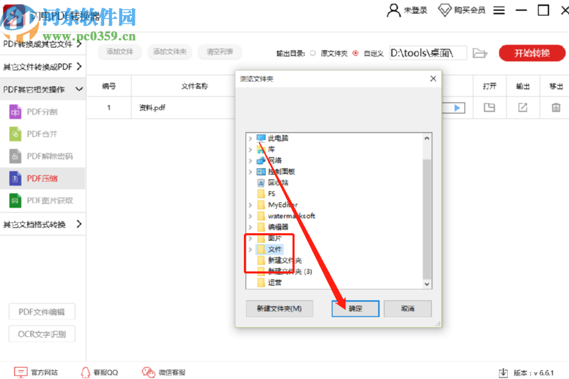 4.点击这个文件夹图标之后会打开一个选择文件输出位置的界面,我们在这个界面中选择文件压缩之后的输出储存位置。