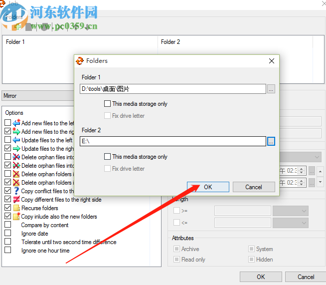 5.设置好备份文件夹1和备份文件夹2之后,我们就可以点击这个界面中的OK这个按钮了。