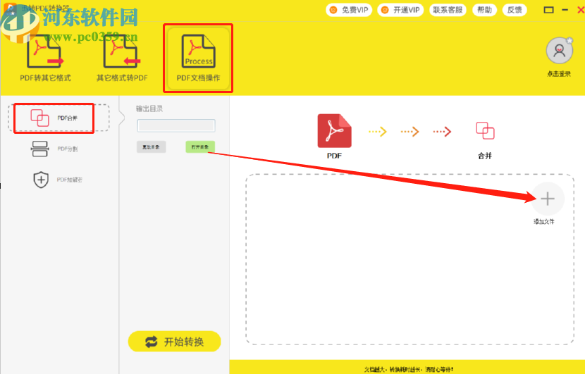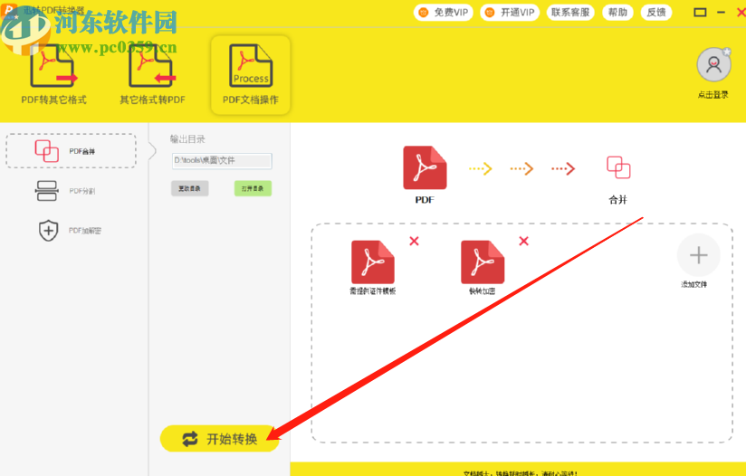 4.之后下一步我们就可以点击界面下方的开始转换这个功能按钮来开始合并选择的这些PDF文件了。