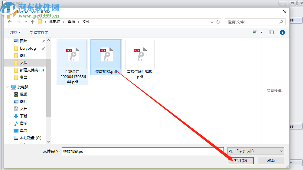 3.点击浏览按钮之后就会打开选择文件的界面了,在这个界面中我们选择想要加密的文件,然后点击界面右下角的打开按钮即可。