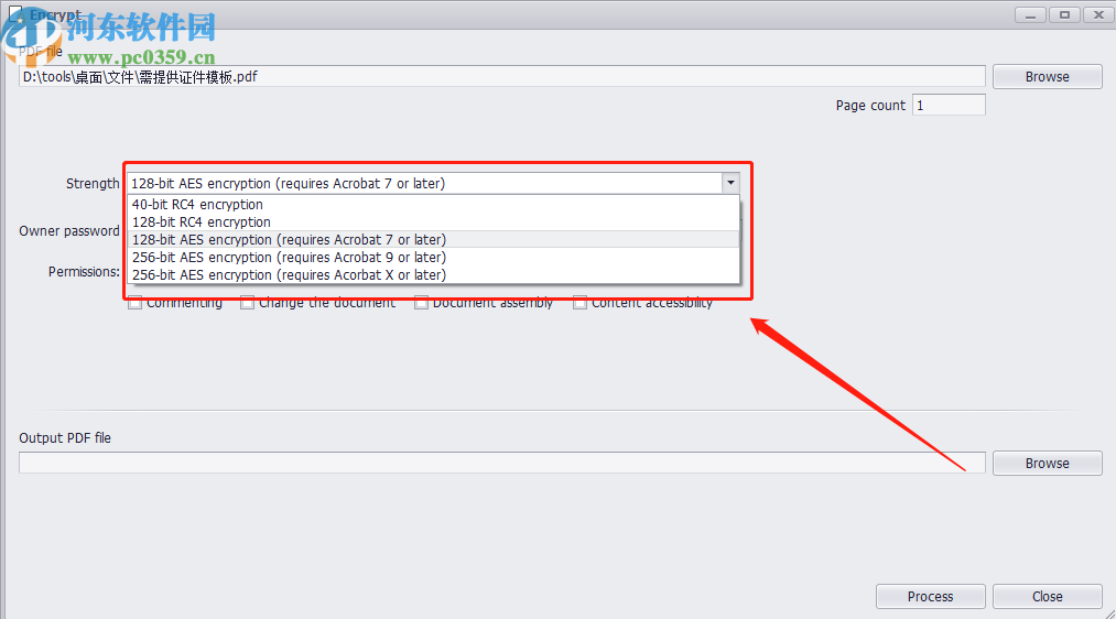 5.紧接着下一步我们就可以选择设置想要加密文件的密码了,owner password是打开文件的密码;user password是文件的权限密码,在下方可以根据需求来勾选文件的权限。