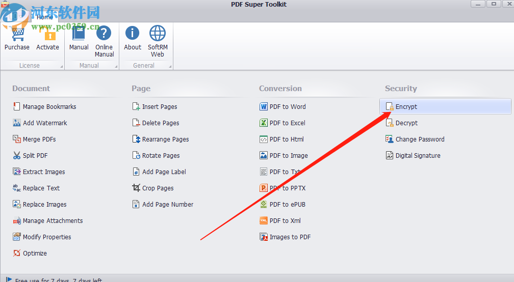 PDF Super Toolkit是一款可以帮助用户处理PDF文件的PDF超级工具,其中有很多的功能可以帮助用户处理PDF文件,包括合并、分割、压缩、加密等等,如果用户需要经常处理各种各样的PDF文件的话就可以通过这一款软件来搞定了,相信有很多用户都有加密文件的习惯,通过PDF Super Toolkit这款软件就可以帮助用户加密文件,这样文件的安全性就更高了,接下来小编就跟大家分享一下使用这款软件来加密PDF文件的操作方法吧,感兴趣的朋友不妨一起来看看这篇教程。