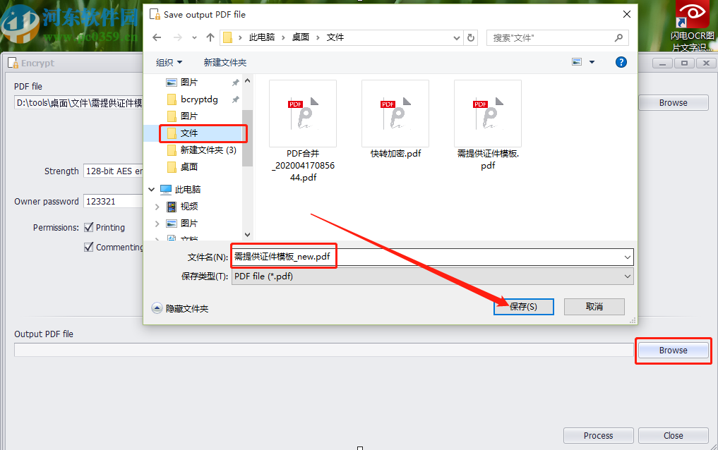 6.设置好密码之后我们点击下方输出文件右边的浏览按钮,点击之后在出现的界面中可以选择文件的输出储存位置。