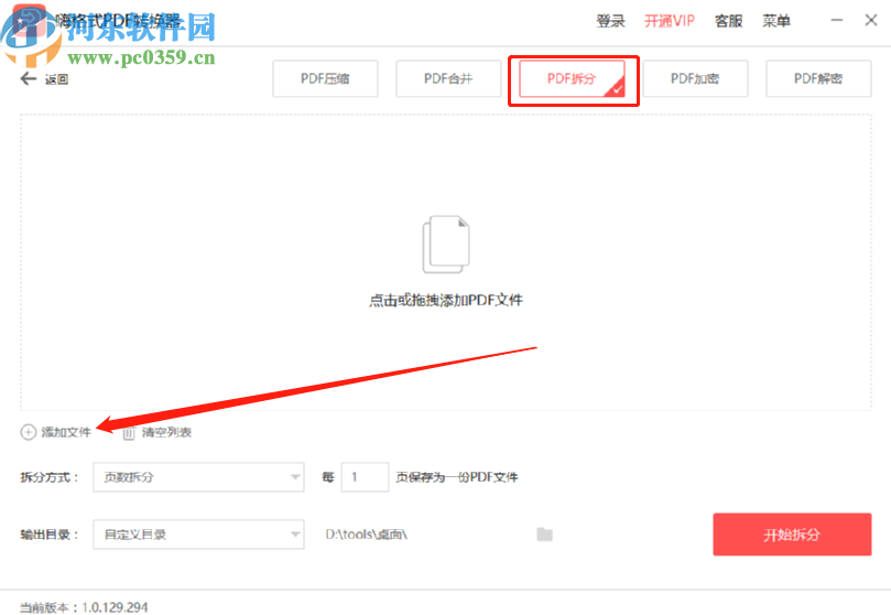 2.下一步我们在界面中选中PDF拆分这个功能之后,点击界面左下角的添加文件选项,点击之后就可以选择想要拆分的PDF文件了。