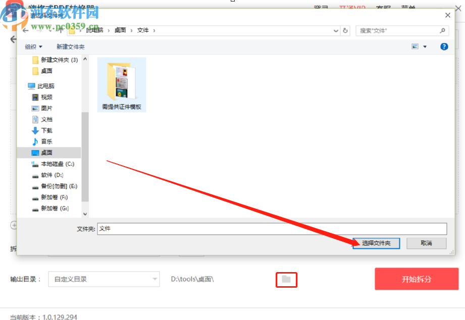 6.选择好拆分文件的方式之后,我们点击输出目录选项后面的文件夹图标,点击之后在出现的界面可以选择文件拆分之后的输出保存位置。