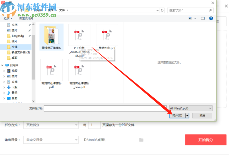 3.点击选择PDF文件之后我们在打开的浏览文件夹界面中,选中目标PDF文件之后,点击右下角的打开按钮即可。