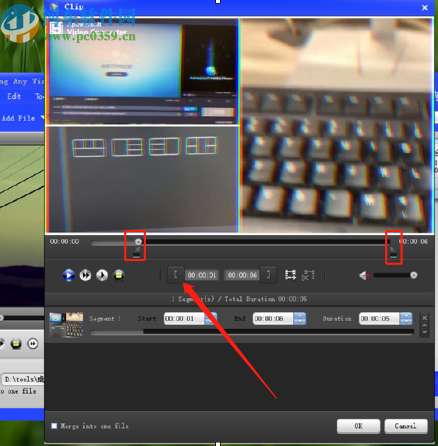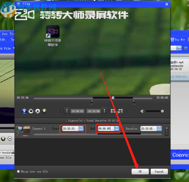 5.另外一种方法就是直接在界面的开始时间和结束时间处输入想要剪切的视频时间位置,输入选取成功之后点击右下角的OK按钮即可。