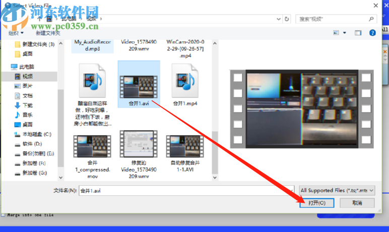 2.点击添加文件之后就会打开一个选择文件的界面了,在这个界面中我们需要选择想要剪切的文件,选中之后点击右下角的打开按钮即可。