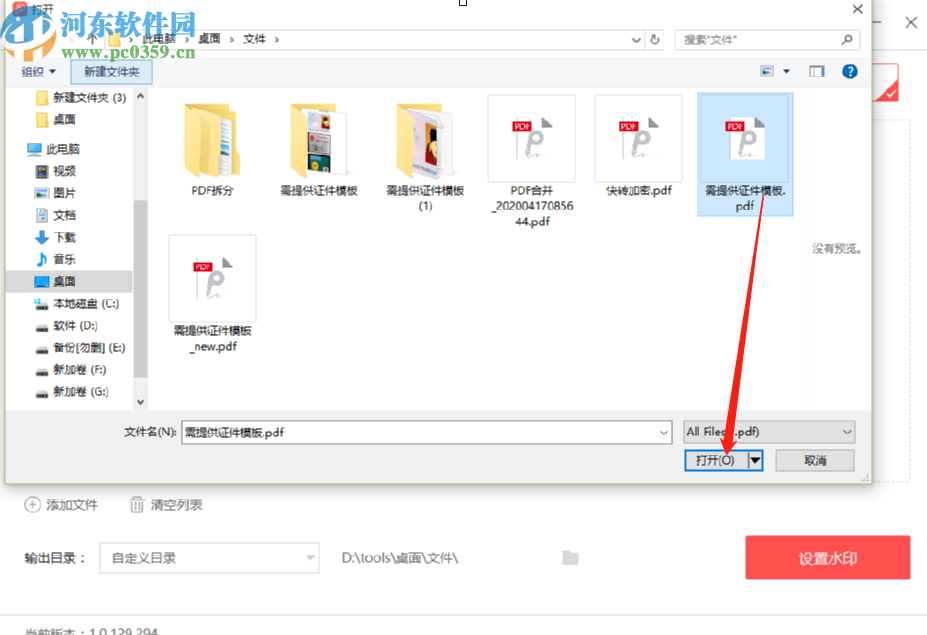 3.点击添加文件按钮之后下一步在出现的选择文件界面中,我们选中目标PDF文件之后点击下方的打开按钮即可。