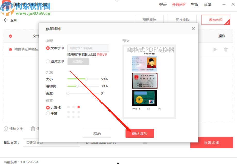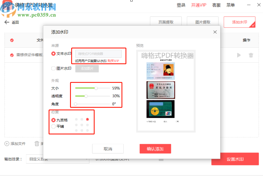 7.在软件中自定义水印内容是需要购买软件VIP的,有需要的朋友自行购买之后完成对水印的样式设置,最后点击确认添加按钮就可以开始添加水印的操作了。