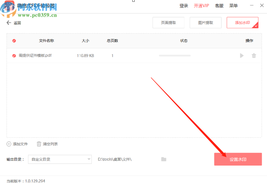 5.设置好输出文件夹之后我们就可以点击界面右下角的设置水印这个功能按钮了,点击即可进入到设置水印的功能界面。