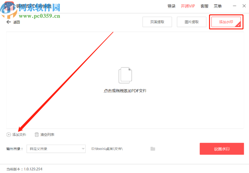 2.进入到更多功能界面之后我们就可以看到添加水印这个功能选项了,选中这个添加水印功能之后点击左下角的添加文件按钮。