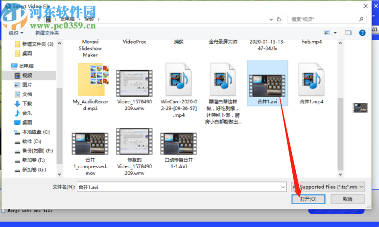 2.点击添加文件之后就会打开一个选择文件的界面了,在这个界面中我们找到想要添加水印的视频文件并选中,然后点击打开按钮。