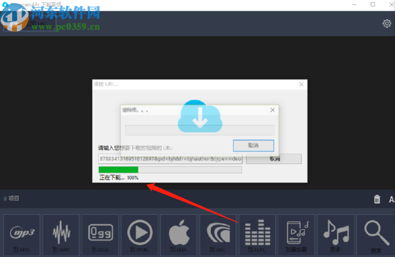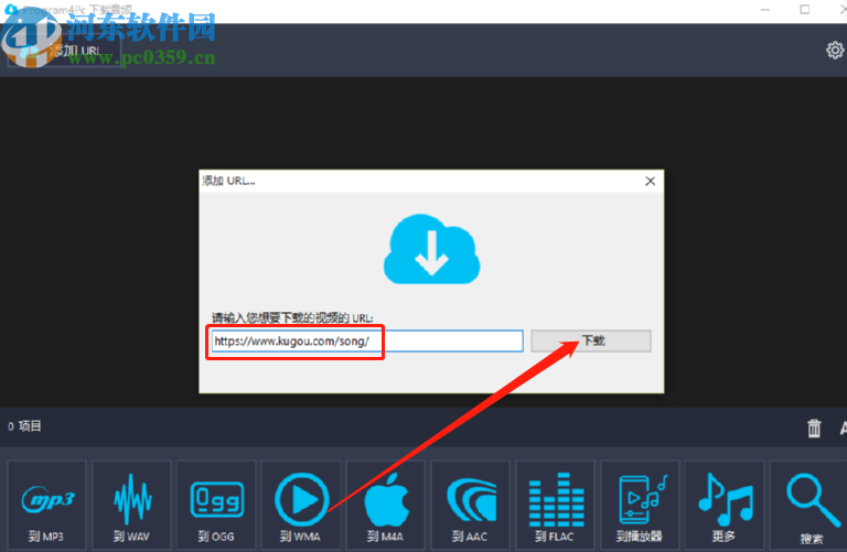 2.进入到下载功能界面之后,我们需要点击左上角的添加URL按钮,然后在出现的界面中将想要下载的视频链接复制到其中并点击下载按钮。