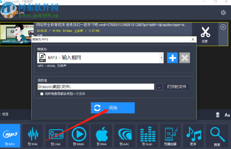 7.选择好输出文件夹之后我们就可以点击界面中的转换这个功能按钮开始转换操作了。