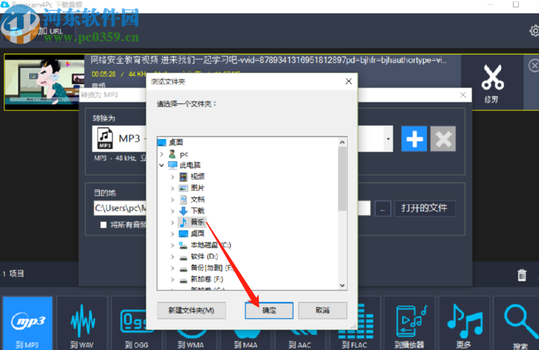 6.点击三点按钮之后就会打开选择输出保存路径的界面了,在这个界面中我们选中目标输出文件夹之后点击确定按钮即可。