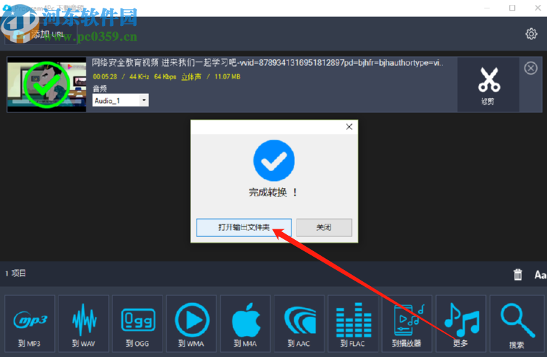 8.最后等到转换操作完成,界面中会出现一个完成转换的提示界面,如下图中所示,然后我们点击打开输出文件夹按钮就可以查看转换的文件了。