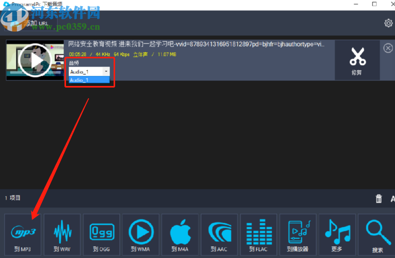 4.等到下载完成之后我们在界面中就可以看到下载好的视频文件了,软件还会识别出视频中的音频文件,然后我们选中视频点击左下方的“到MP3”就可以将视频转换成MP3音频了。