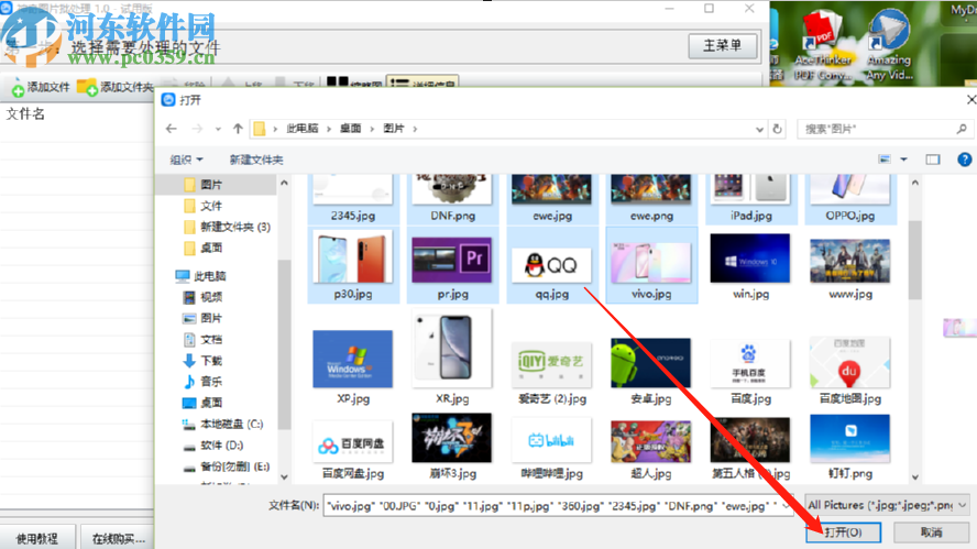 2.点击添加文件按钮之后,下一步就是在出现的界面中选中所有想要批量添加边框的图片,选中之后点击右下角的打开按钮即可。