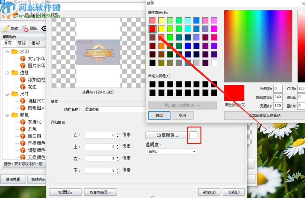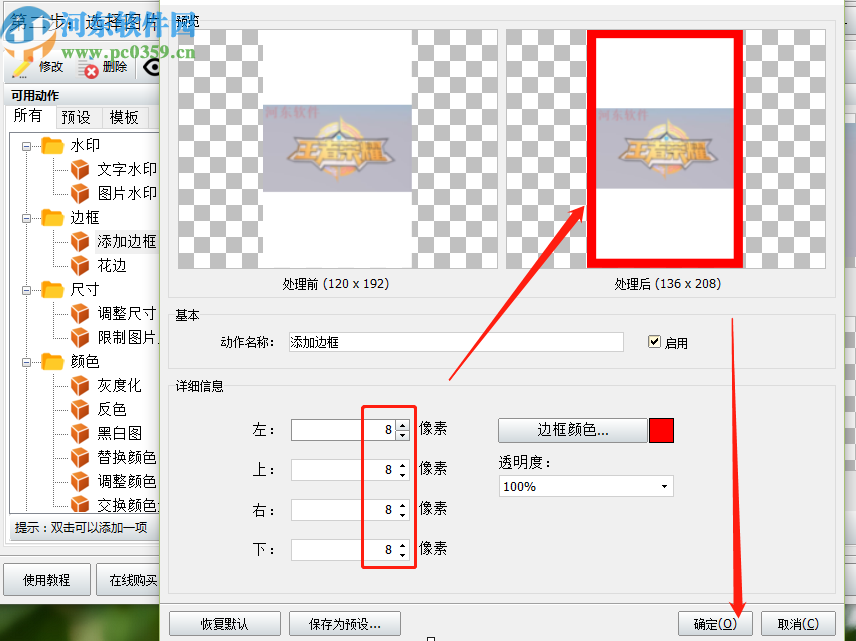 6.最后我们再根据自己的需求来设置边框上、下、左、右的像素宽度,调整之后可以预览到边框效果,点击确定按钮即可保存边框效果设置。