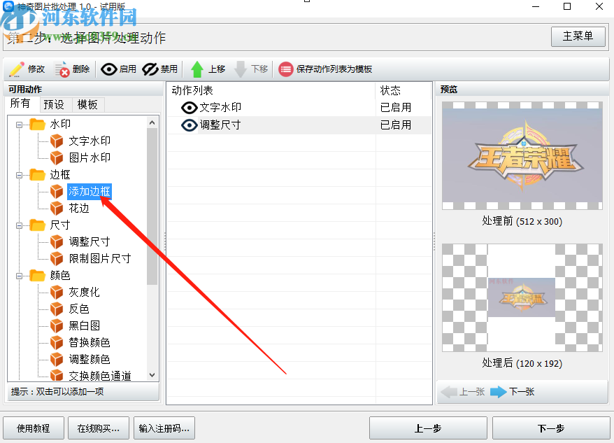 4.进入到下一步之后我们就可以在界面中找到添加边框的功能选项了,找到之后双击这个选项打开添加边框的设置界面。