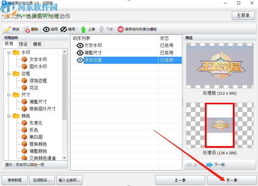 7.保存边框效果设置之后这个添加边框的任务就设置完成了,然后我们点击界面右下角的下一步这个功能按钮。