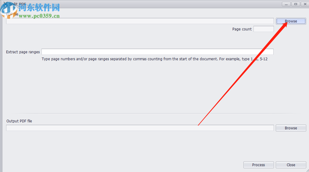 2.打开分割PDF文件的功能界面之后,我们点击界面中的Browse这个浏览文件的按钮,点击之后即可选择想要分割的PDF文件。
