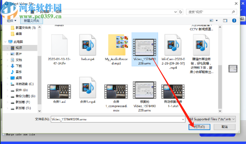 2.点击添加文件之后紧接着会的打开一个浏览文件的界面,我们需要在这个界面中找到想要剪切的文件,选中之后点击打开按钮。