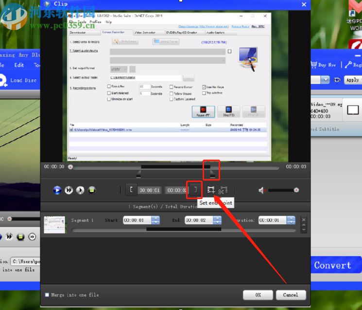 7.最后点击OK按钮会回到软件的主界面中,此时可以看到我们选择剪切的那一个视频片段,然后我们点击界面右下角的Convert转换按钮就可以将剪切的视频文件转换保存下来了。