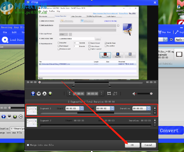 6.点击这个按钮之后我们选择剪切的视频片段就成功添加到剪切列表当中了,然后我们需要点击这个界面下方的OK按钮。