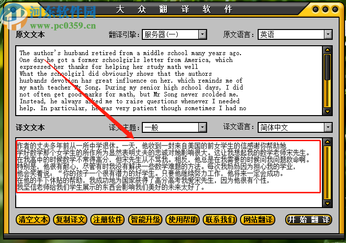 5.点击开始翻译按钮之后软件会自动开始翻译操作,等到翻译完成之后我们在译文文本这个模块就可以看到翻译得到的中文内容了,可以直接复制进行下一步使用。