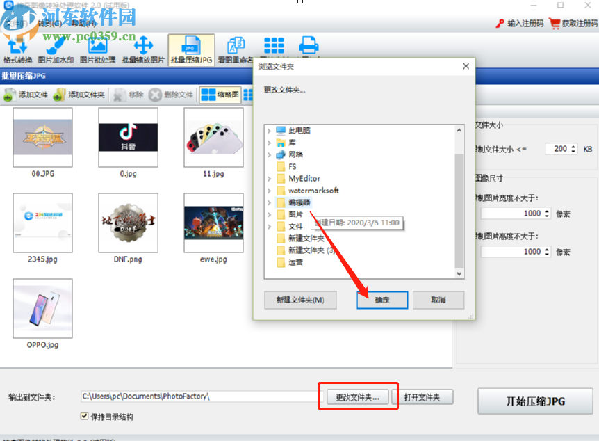 5.设置好压缩的参数之后我们可以点击下方的更改文件夹按钮来更改文件压缩之后的输出保存位置,这样方便用户查找文件。