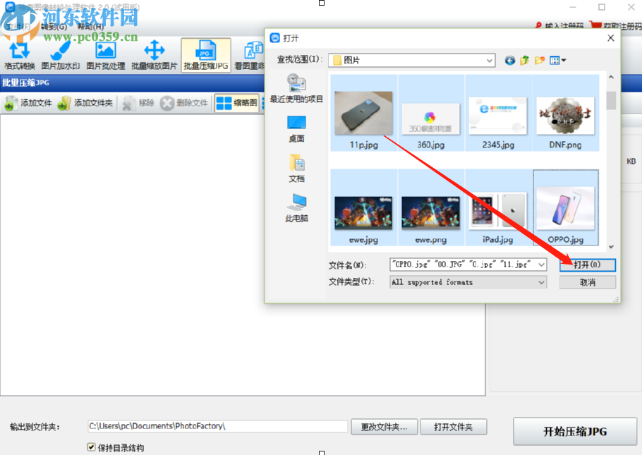 2.点击添加文件之后在出现的选择文件界面中我们选中想要压缩的图片并点击右下角的打开按钮。