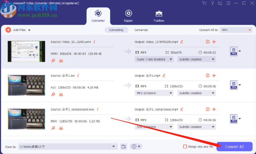6.最后我们在设置好文件转换输出的保存路径之后,点击界面右下角的Convert All这个全部转换的功能按钮就可以开始转换操作了。