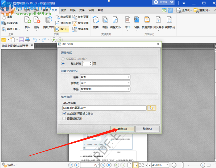 7.最后一步就是设置好文件保存位置之后了,设置完成之后我们点击界面中的确定按钮即可开始拆分文档的操作。
